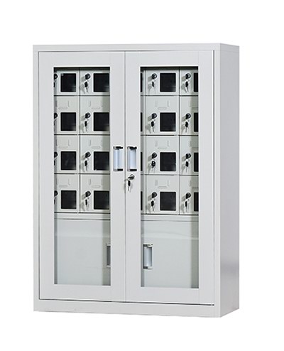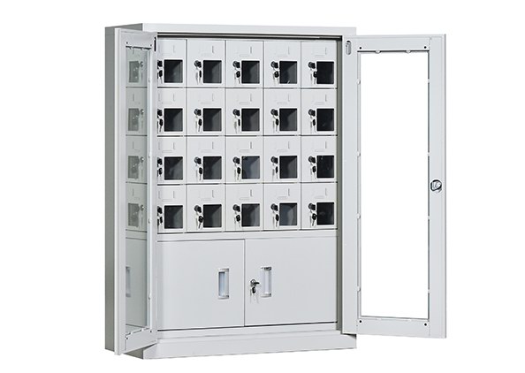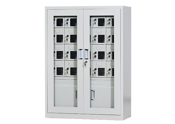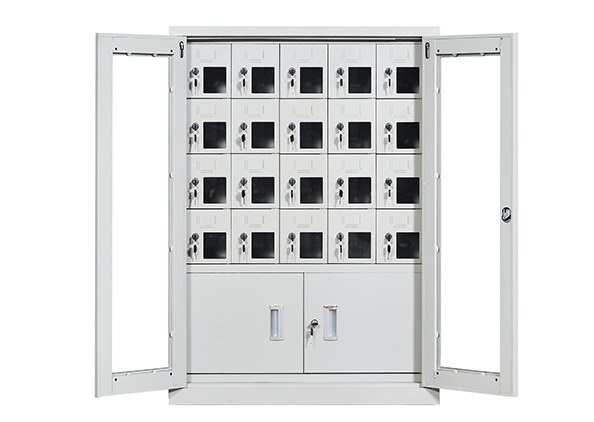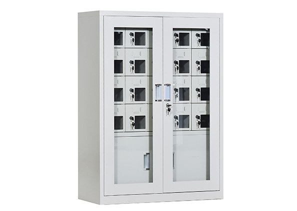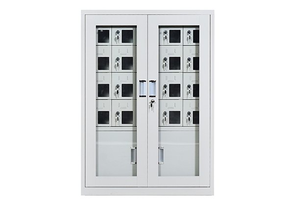 手機保密柜正面為對開金屬邊框玻璃大門,便于觀察柜內情況,堅固透亮,美觀大方。