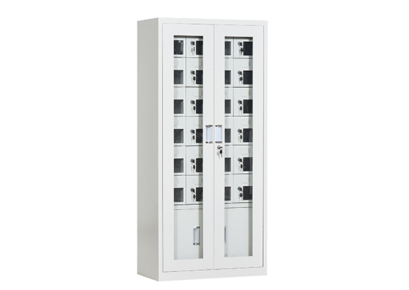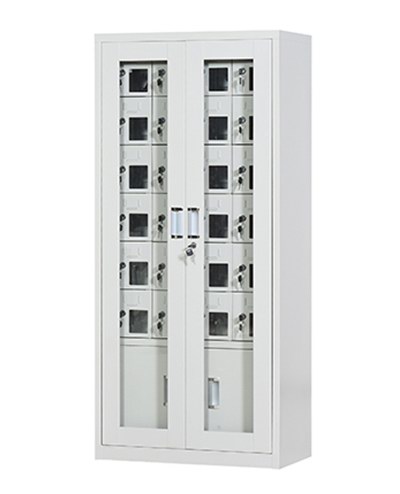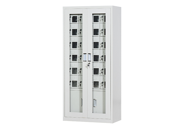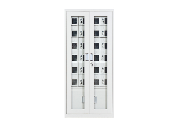 手機保密柜正面為對開金屬邊框玻璃大門,便于觀察柜內(nèi)情況,堅固透亮,美觀大方。