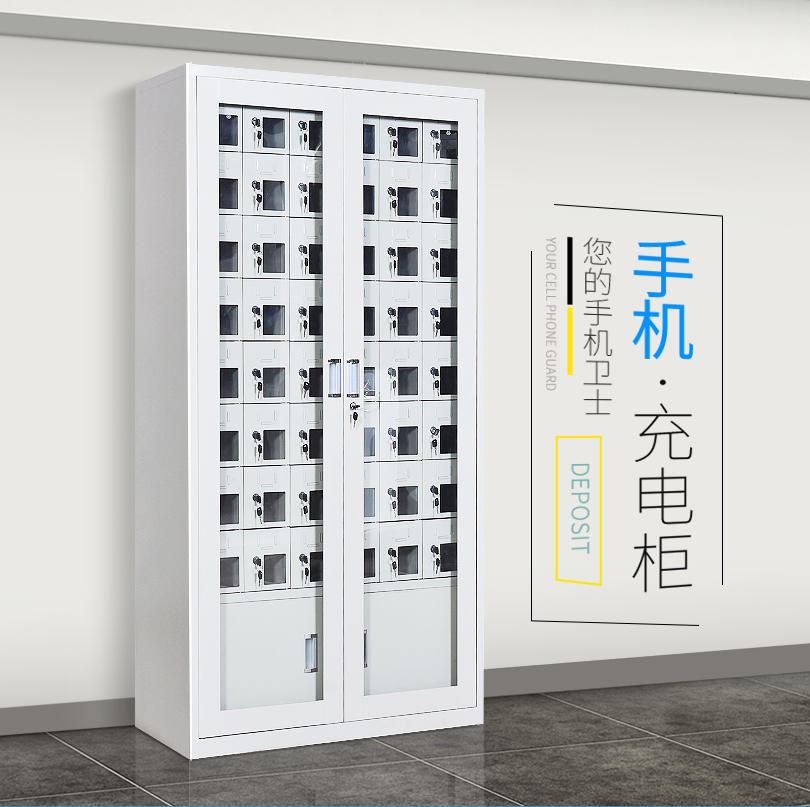 手機(jī)保密柜正面為對(duì)開金屬邊框玻璃大門,便于觀察柜內(nèi)情況,堅(jiān)固透亮,美觀大方。