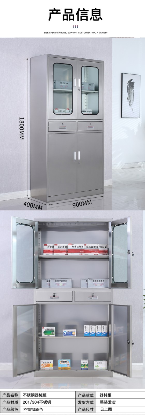 不銹鋼西藥柜中二斗